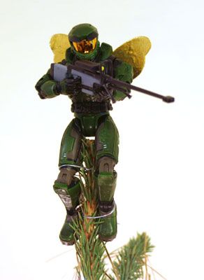 He saves the world from the Covenant and the Flood… and he guards my Christmas tree with his ever watchful eye… in festive getup, of course!