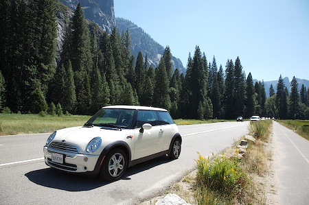On Monday morning, we went to collect our rental car - which was to be a “Ford Focus or similar”. They saw me coming, because there was a Mini parked right outside the front door of the rental place. “We’d love to take more of your money, sir” they said, and we were on our way to Yosemite National Park in that very Mini.