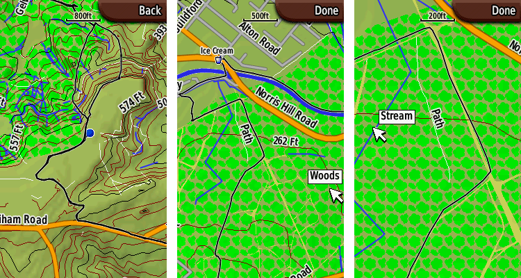 On the trail, the unit is amazing. As you can see from the screenshots below, you can zoom right in and view the landscape detail all around you, including trails and paths. The black route on the shots is the route we took:
